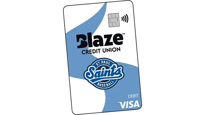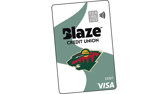 Choose from a standard contactless Blaze Visa® Debit card, or pick one of our exclusive partner cards with the Minnesota Wild, St. Paul Saints, UMN Alumni Association, or St. Cloud Rox.